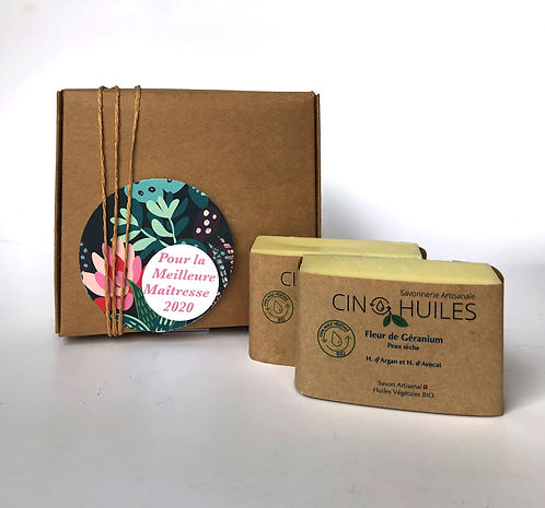 Boite cadeau pour les Maîtresse et Maitre de votre enfant avec 2 savons (2 peau sèche) avec boite personnalisé.