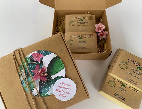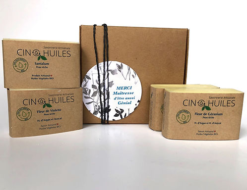 Boite cadeau pour les Maîtresse et Maitre de votre enfant avec 4 savons peau sèche avec boite personnalisé.